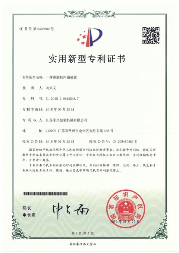 江蘇來義包裝機械有限公司成立于2007年,位于長三角經濟帶常州市金壇區,主要從事擠出復合生產線的研發、生產與銷售。依托全方位的技術開發、試驗、交流、咨詢、服務,致力于多領域的科技推廣和應用。多年來,公司始終秉承“義”的價值觀,堅守“專注研發、質量第一、客戶至上”的經營理念,孜孜以求,持續深耕,擁有各項專利達60余項,先后榮獲“江蘇省高新技術企業”、“江蘇省民營科技企業”、“中國人民銀行AAA信用評級”等榮譽稱號,成為行業佼佼者。