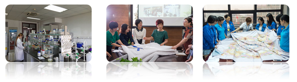 抓源頭,做好研發(fā)與設(shè)計,讓企業(yè)走在行業(yè)的前面。寶縵與哈工大、南通紡織學(xué)院、蘇州大學(xué)、以及韓國和歐洲的相關(guān)公司進(jìn)行技術(shù)研發(fā)合作,同時在上海還有一個專業(yè)的40多人的研發(fā)設(shè)計團(tuán)隊,從產(chǎn)品的市場調(diào)查、功能設(shè)計、面料選取、花色設(shè)計、款式研發(fā),全方面突破,走在行業(yè)的前面。(圖為蘇州大學(xué)、哈爾濱工業(yè)大學(xué)、南通紡織學(xué)院)
