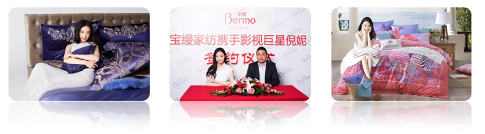 2015年5月,寶縵成功簽約偶像女神倪妮,成寶縵家紡最新形象代言人。倪妮自高起點出道以來給觀眾帶來了諸多佳作,無論是一炮而紅的《金陵十三釵》,還是之后的《我想和你好好的》、《等風(fēng)來》、《匆匆那年》等,每一個角色的塑造都展現(xiàn)了她為人驚嘆的演技,并收獲了無數(shù)粉絲。倪妮一直以清新、健康的都市新女性形象為大家所喜愛,她完美的形象、甜美的笑容、強(qiáng)大的氣場讓她成為眾多時尚界寵兒。圖為寶縵集團(tuán)總裁陸維國先生與著名影視巨星倪妮簽約留影。