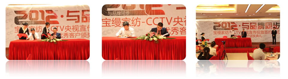 2012年5月25日,寶縵家紡正式簽約央視,這標(biāo)志著寶縵家紡在品牌推廣與運(yùn)營的道路上又邁出了嶄新重要一步。寶縵一直注重品牌形象的塑造,無論是平面媒體宣傳還是電視、網(wǎng)絡(luò)媒體宣傳,公司都會經(jīng)過慎重的挑選,合作與運(yùn)營。多種品牌運(yùn)營方式不僅提高了寶縵的品牌知名度和美譽(yù)度,也得到了各界人士的一致認(rèn)可與好評。圖為寶縵集團(tuán)董事長陸維祖先生與央視領(lǐng)導(dǎo)簽約現(xiàn)場。