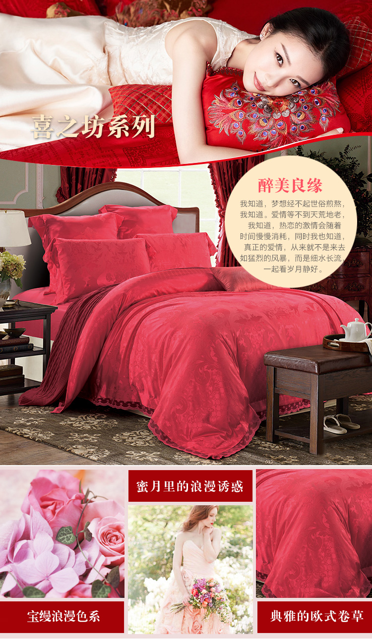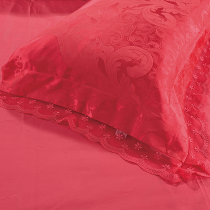 花型:尊貴典雅的歐式卷草與花卉底紋的完美結合,使產品既大氣有顯奢華,加上簡潔大方的蕾絲花邊,使產品更加柔美、華麗。