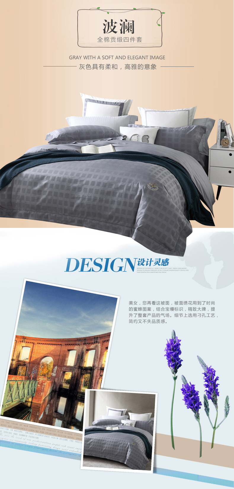 色彩生活,寶縵家紡!今天為大家推薦的是寶縵2016年秋冬比薩系列主推品“波瀾”, 這款產(chǎn)品采用高支高密全棉色織提花面料,其質(zhì)地柔軟、表面平滑、透氣性能佳,親膚舒適度很高。它深受現(xiàn)代年輕人的熱愛與追捧!