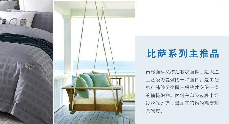 A、你好,您的眼光真好,你看上的這款是我們今年比薩的主推品---波瀾!這款產(chǎn)品采用高支高密全棉提花面料,全棉面料的特性為質(zhì)地柔軟、表面平滑、透氣性能佳,親膚舒適度很高。