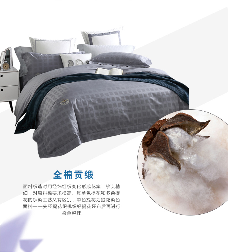 第三:面料織造時(shí)用經(jīng)緯組織變化形成花案,紗支精細(xì),對(duì)原料棉要求極高。其單色提花和多色提花的織染工藝又有區(qū)別,單色提花為提花染色面料——先經(jīng)提花織機(jī)織好提花坯布后再進(jìn)行染色整理。而色織提花則先經(jīng)染色,再織成花紋,其色彩牢度高,是全棉產(chǎn)品里面的高檔產(chǎn)品,面料厚度感好,有質(zhì)感,正反兩面的顏色正好相反,立體感強(qiáng) ,縮水率小其產(chǎn)品不起球,不掉色。