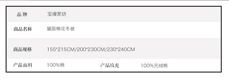 填充物:100%元絨棉 1.4kg/2kg/2.4kg