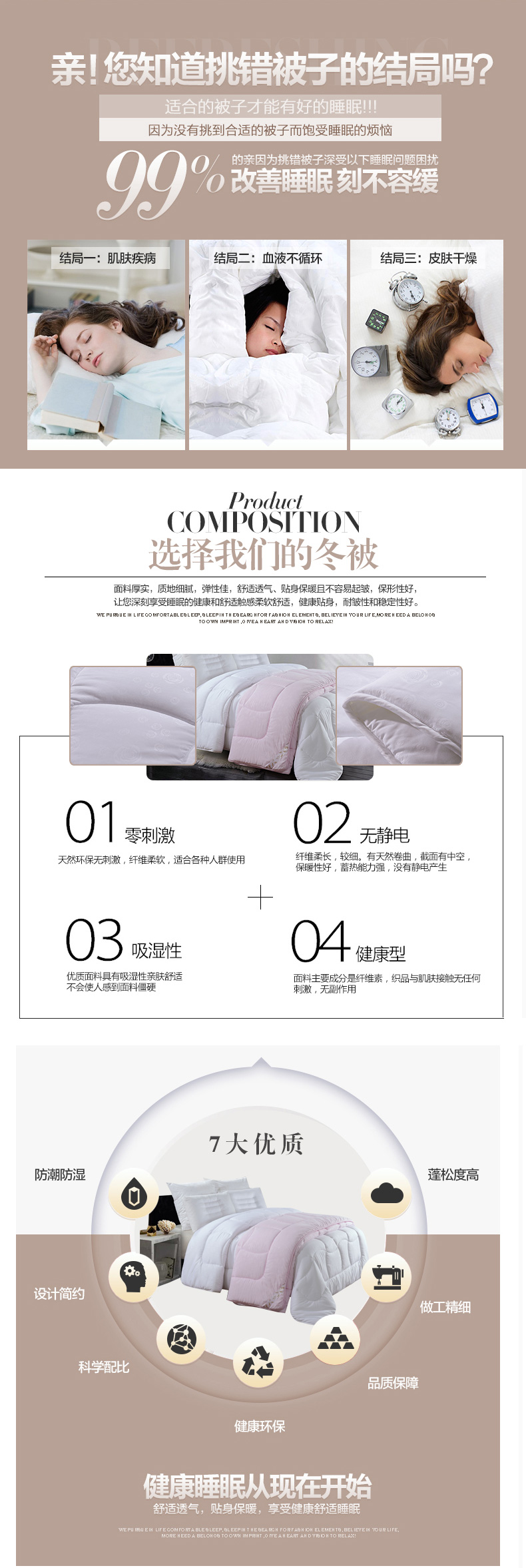工藝:緊密且具有美感的絎縫,無論怎么翻身,被芯始終平整舒適。