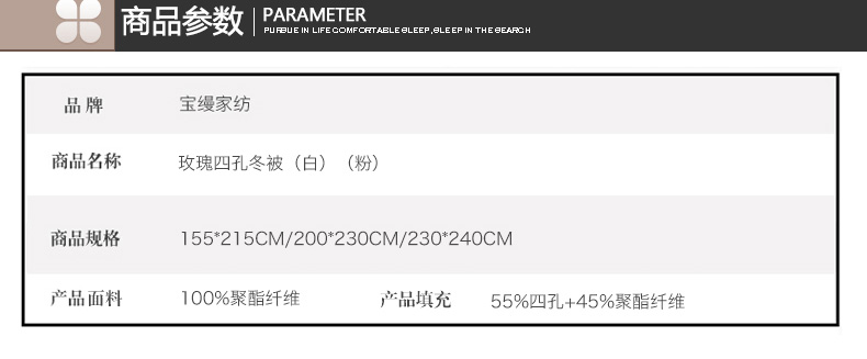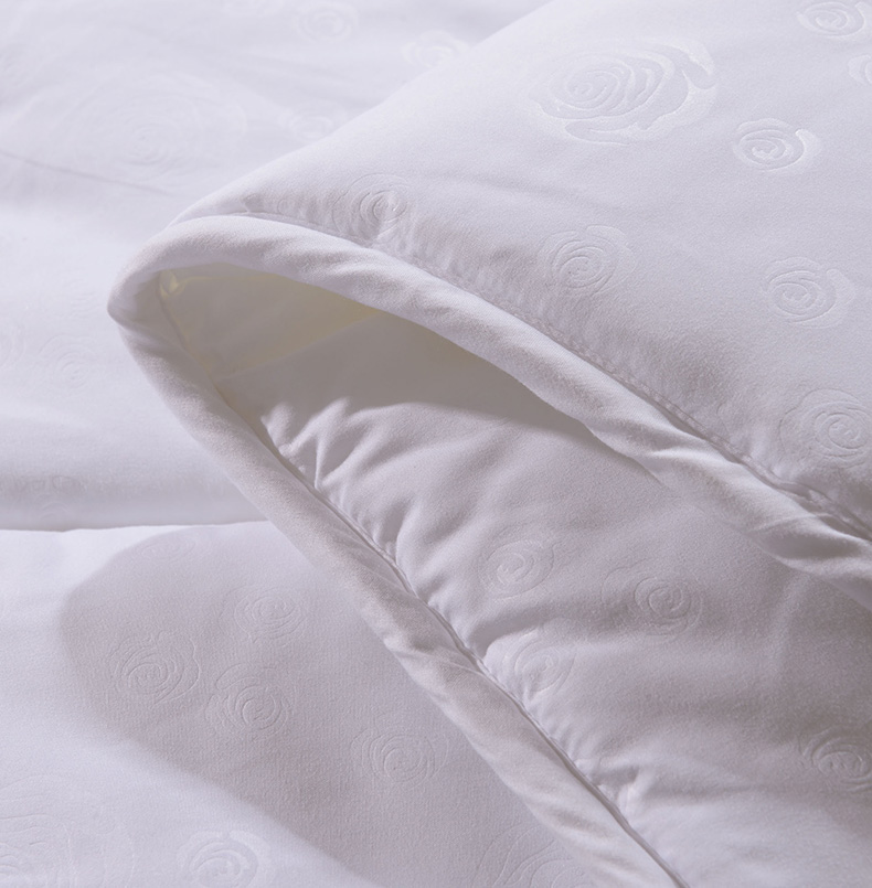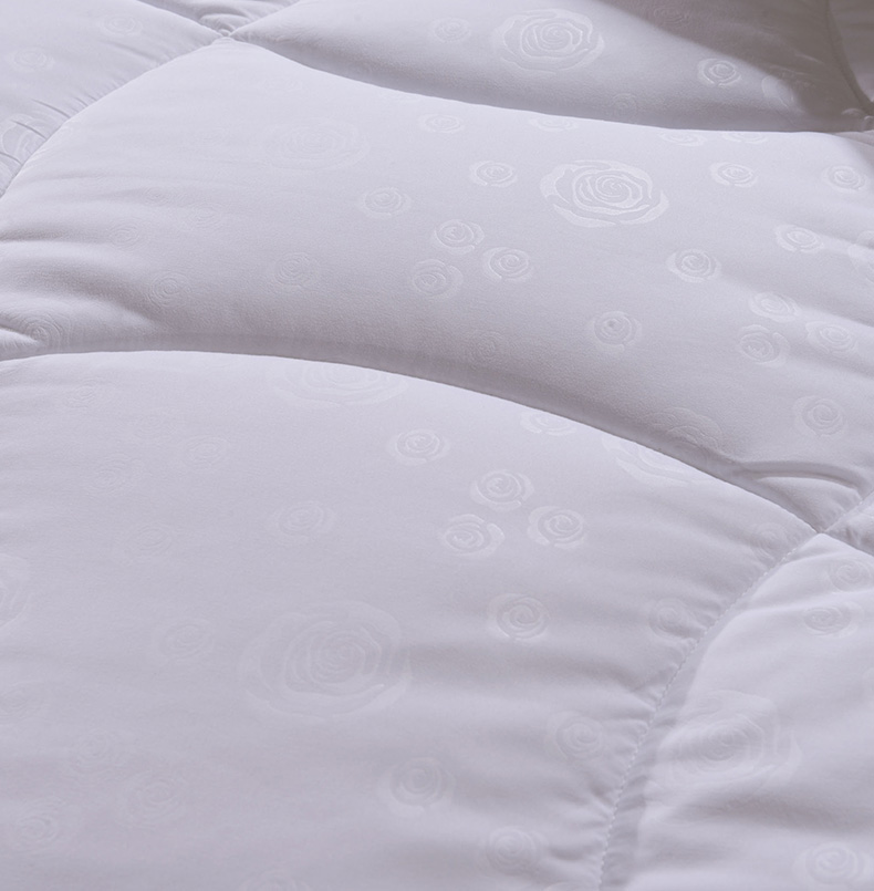 產品特點:精選玫瑰壓花面料,手感柔滑輕盈。55%四孔聚酯纖維、45%聚酯纖維填充,蓬松度高。