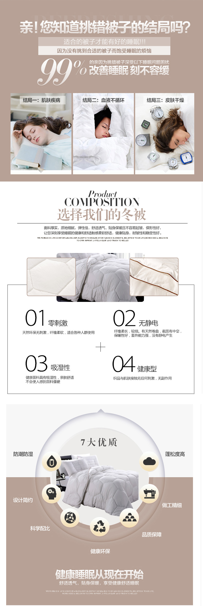 填充物:100%聚酯纖維(舒彈絲)1.4kg 2kg 2.4kg