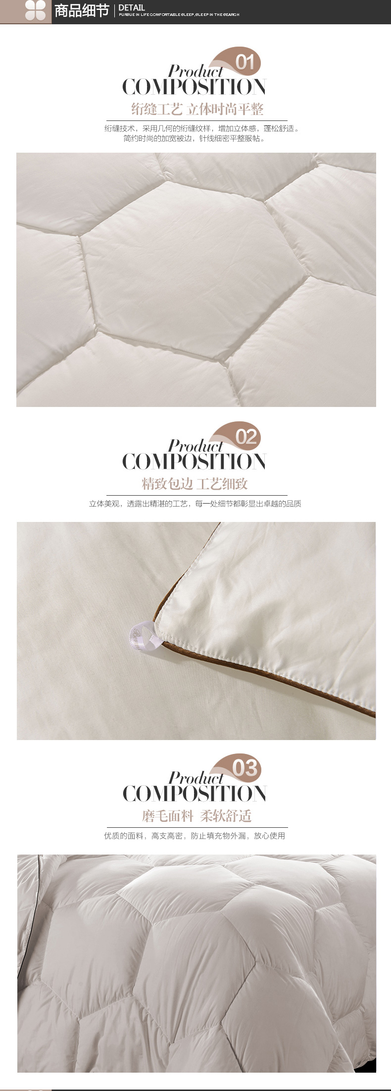 工藝:六邊形蜂巢設計使每一格的填充物重量幾乎一樣,蓬松厚實,不跑棉。