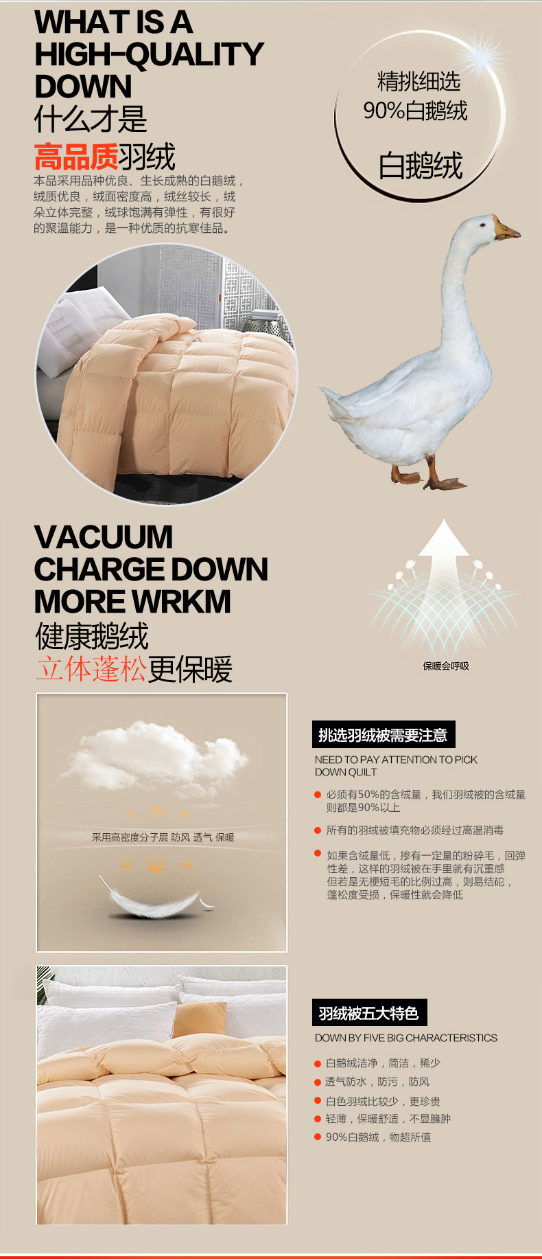 填充物:白鵝絨(絨子含量90%)