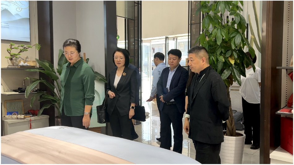 陸維祖董事長向李副市長介紹了公司的發展歷程和目前的戰略方針。李副市長一行認真了解寶縵5A抗菌理念,并且參觀了沈繡系列展區,對寶縵弘揚傳統文化的精神表示了極大的肯定并提出未來持續加大文化宣傳力度。李副市長還對寶縵的發展規劃十分關注,對企業首家提出5A抗菌理念、提升全民健康生活品質給予充分肯定。